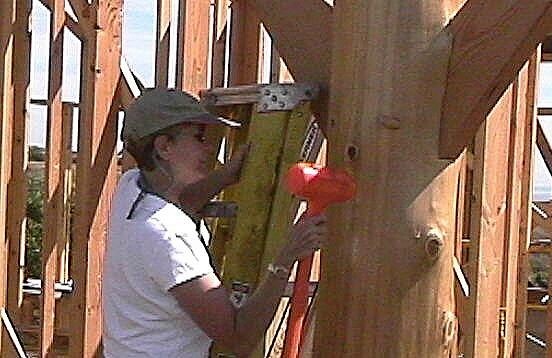 | Judy setting the front post |