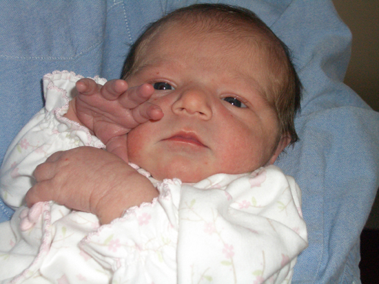 Betsy and Jeff have a new daughter Edith (“because we liked that name”) Day (because it’s Jeff’s mom’s name). She arrived on February 18th (two weeks early, as one would expect a relative of Betsy’s to do). Seven pounds, 11 ounces, 21 inches long, and, frankly, stunning.