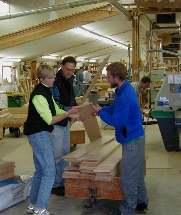 | Judy selects the ceiling wood |