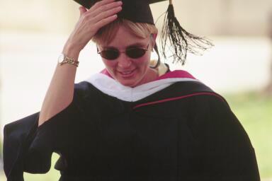 And here's Judy, "be-gowned", rushing to get her parchment......